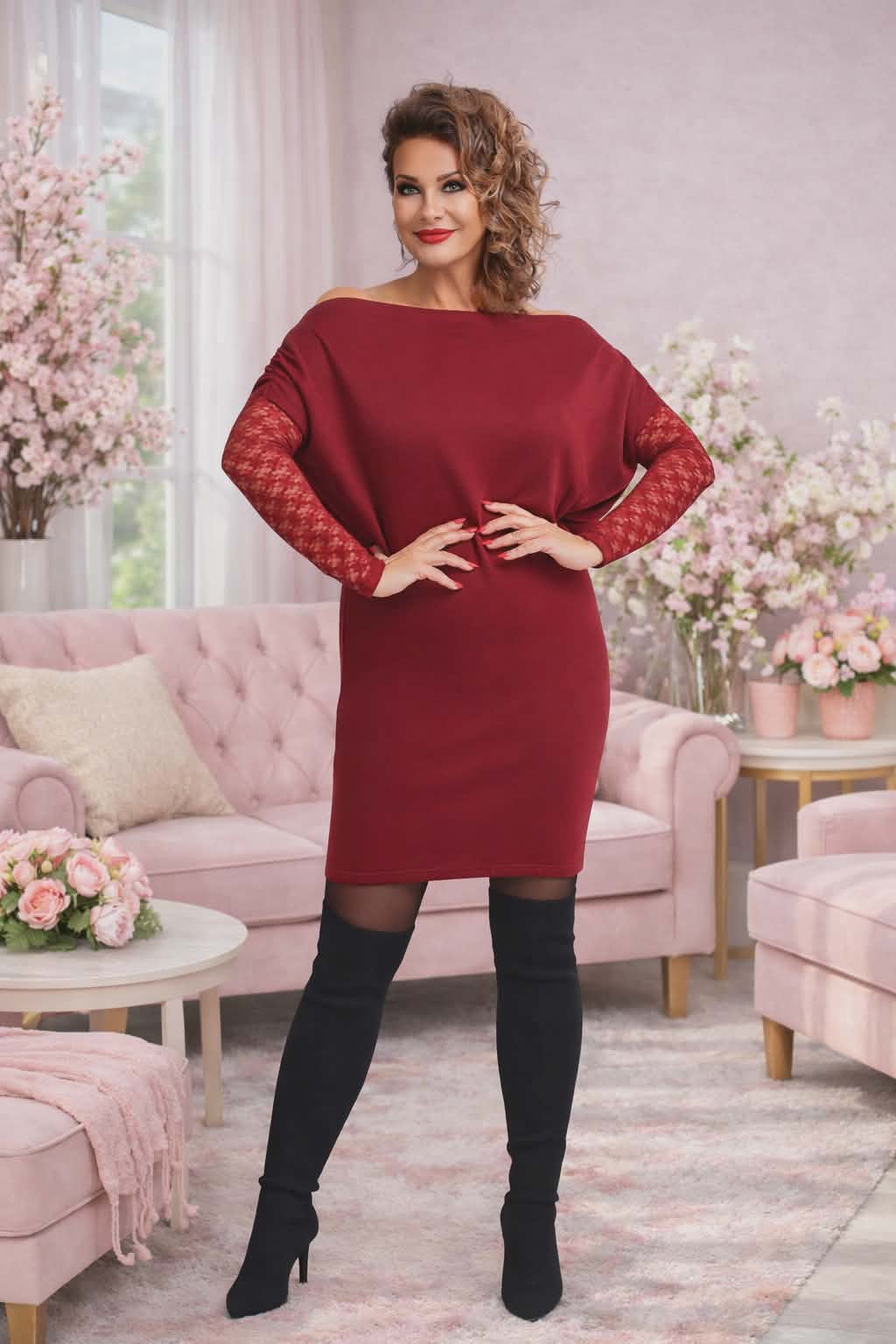 Vastagabb kötött anyagú,csipkés ujjakkal díszített elegáns ruha!