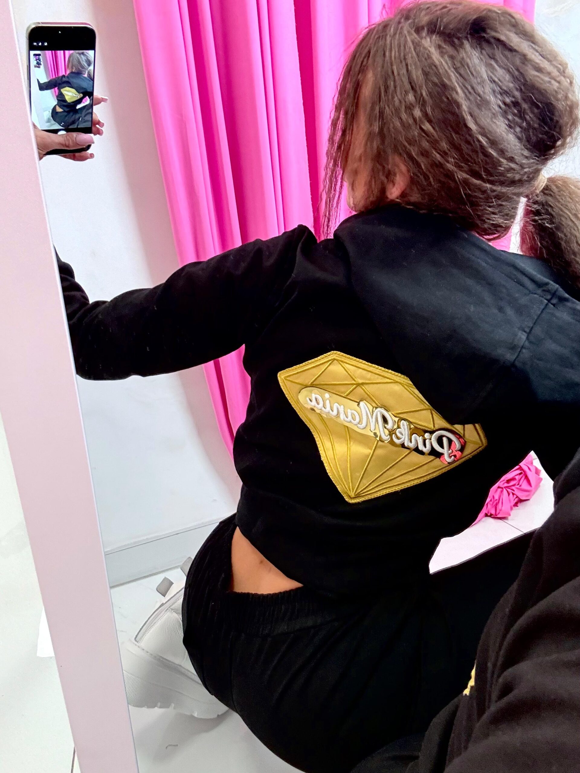 - Rövidített fazonú, zipzáras,kapucnis felső,hátán díszített gyémánt hímzéssel!