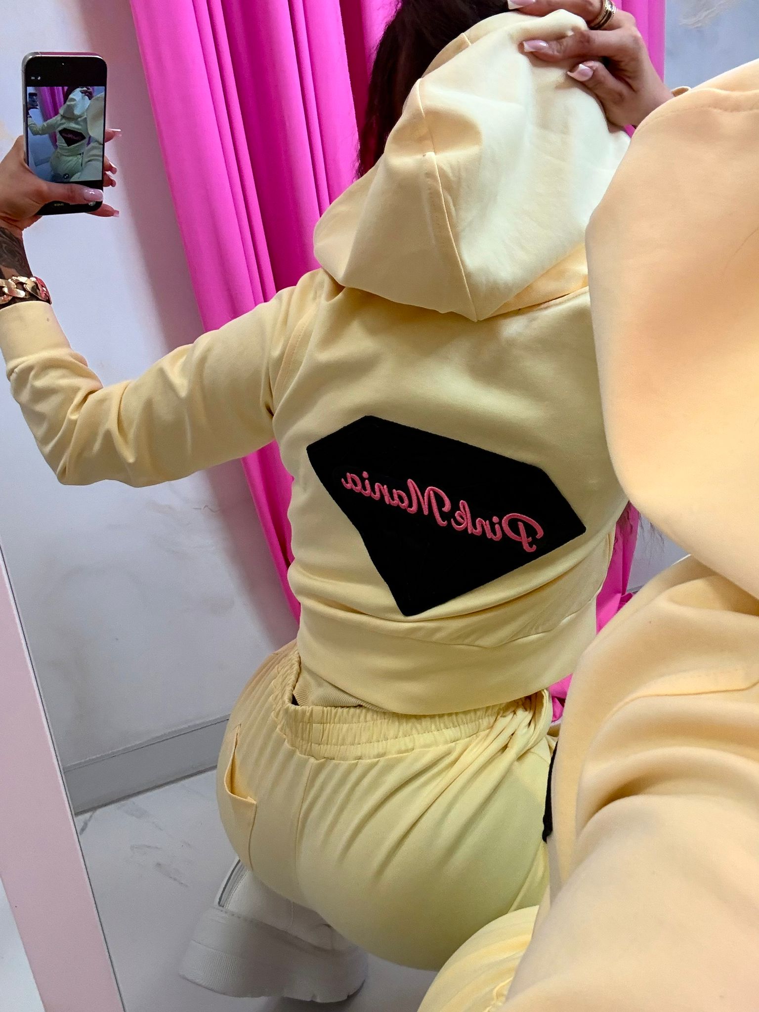 - Rövidített fazonú, zipzáras,kapucnis felső,hátán díszített gyémánt hímzéssel!